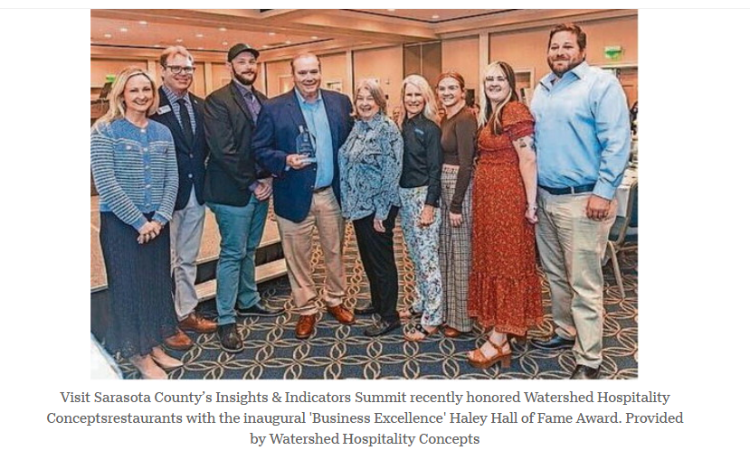Watershed Hospitality Concepts received the inaugural Business Excellence – Haley Hall of Fame Award at Visit Sarasota County’s Insights & Indicators Summit.